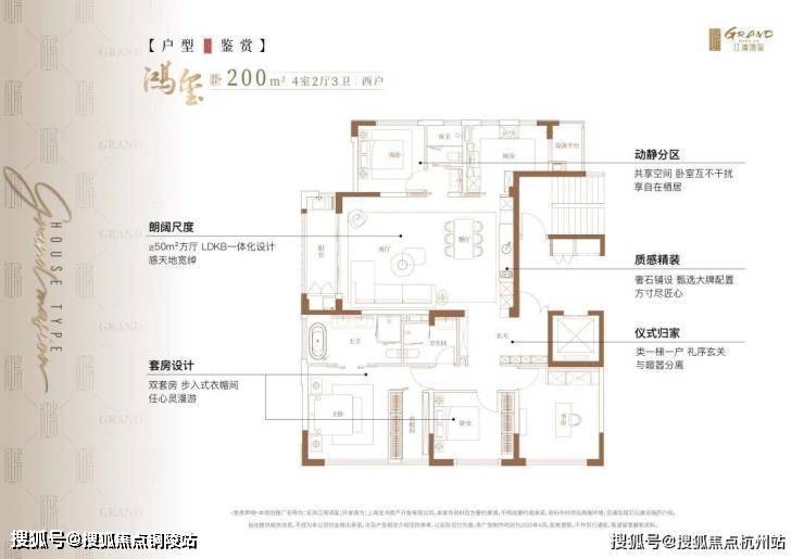 户型为建面约200㎡4房3卫大平层。