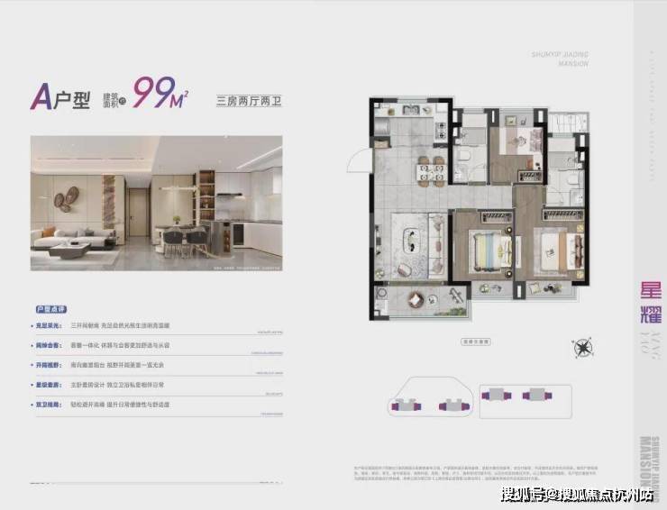 建面约99㎡的三房两厅两卫,很适合一家三口的上车的作品。三开间朝南,南北通透,动静分区,户型非常方正!