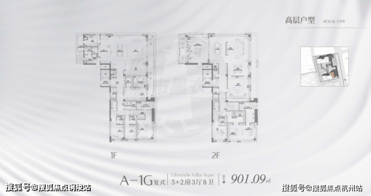 D1地块:约2.1万㎡小高层及联排与独栋,共98套,套均面积282㎡。