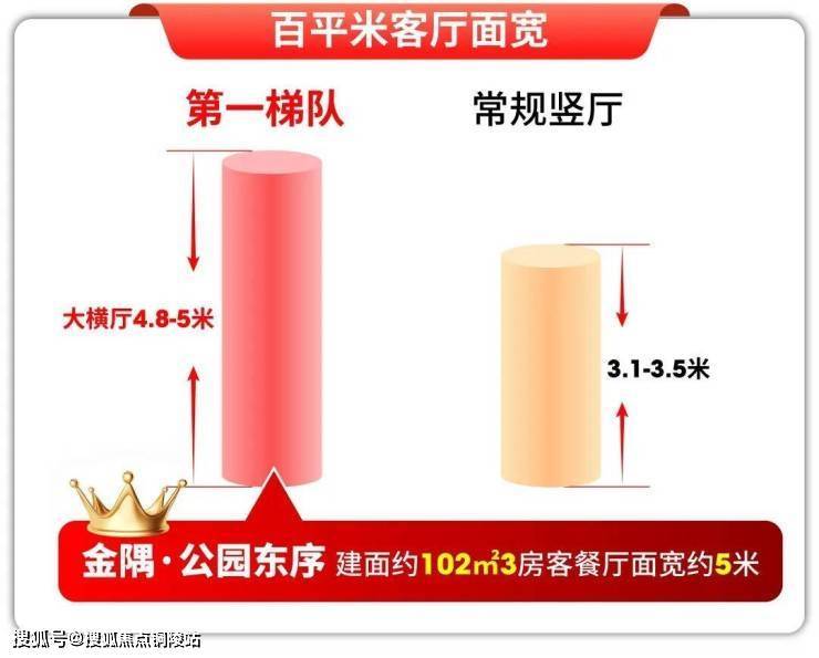 金隅·公园东序建面约102㎡3房,直接做到约5米横厅客餐厅,在市面98–102㎡面积段里,稳居第一梯队。