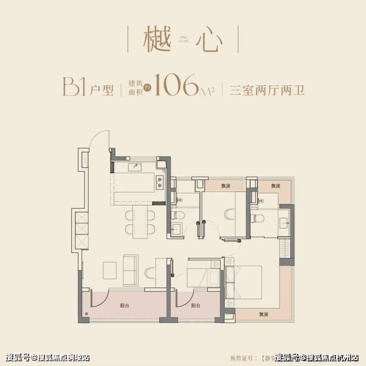 建面约106㎡户型, 更是以宽尺大横厅和270°的转角飘窗赚足了眼球,阳光与清风自由流淌,居住舒适度全面提升。LDKB一体化设计,在餐厨区布局万能中岛台,打破了厨房与餐厅的界限,延伸烹饪空间,增加收纳空间,更将社交功能融入其中,重塑中国人的情感场域。