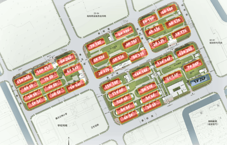 根据项目规划设计方案显示,项目拟建38幢5-26F住宅产品,共计2871套