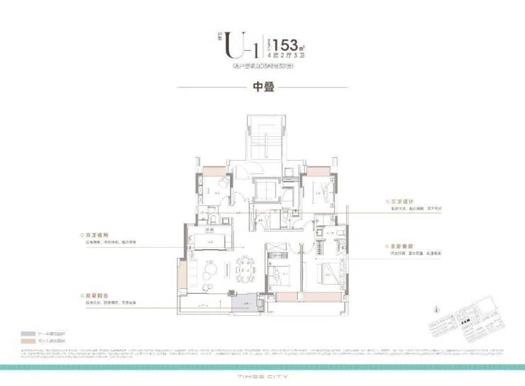 项目的中叠四开间朝南,超大 的采光面,妥妥市区豪宅大平层的尺度感。