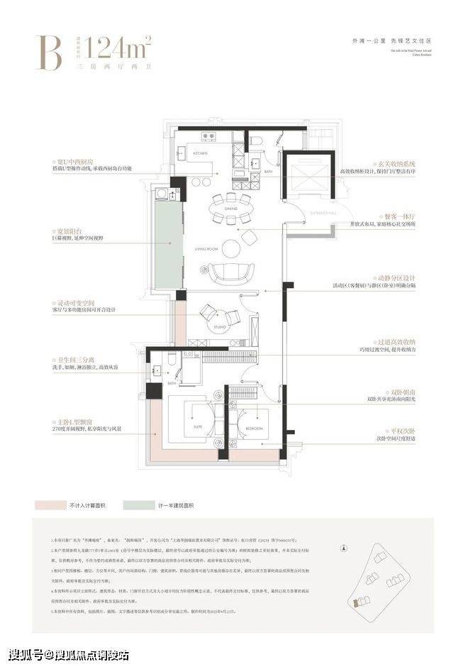 主卧小家化:南向大套房配L型大衣帽间、南向采光主卫,双台盆+淋浴+浴缸+马桶四件套,酒店级私享体验;