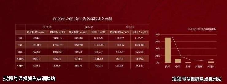 从近三年上海成交数据看,中外环以及外环外成交价格基本保持稳定,内中环稳步上涨,唯独内环内呈现跳涨态势。数据显示,内环内新房成交均价从 2023年约11.9万/㎡跳涨到2025年约16.23万/㎡,三年涨幅达到36%。