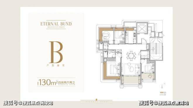我们来看首推的约130㎡户型,这个面积段的四房产品,很容易面对多个房间分隔,导致空间零碎,或者部分房间不实用的问题。