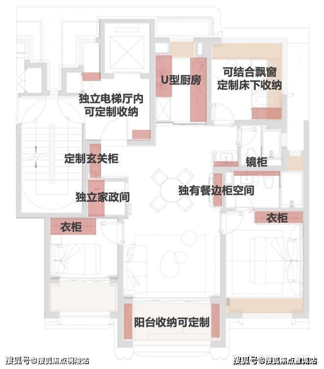 建面约115㎡户型收纳解剖