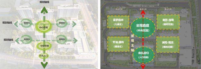 围绕“一轴·一心·四园”的景观设计理念 ,以中央花园和健康静谧的组团花园,通过现代主义建筑风格演绎,呈现充满运动活力和健康生活的公园式品质社区。