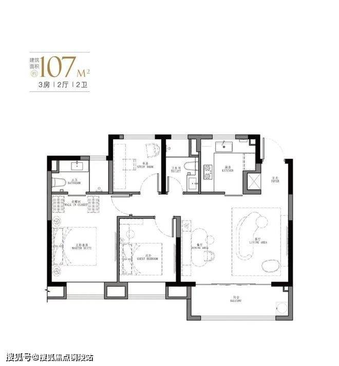 产品:103㎡、107㎡的三房两厅两卫及123㎡、129㎡的四房两厅两卫。