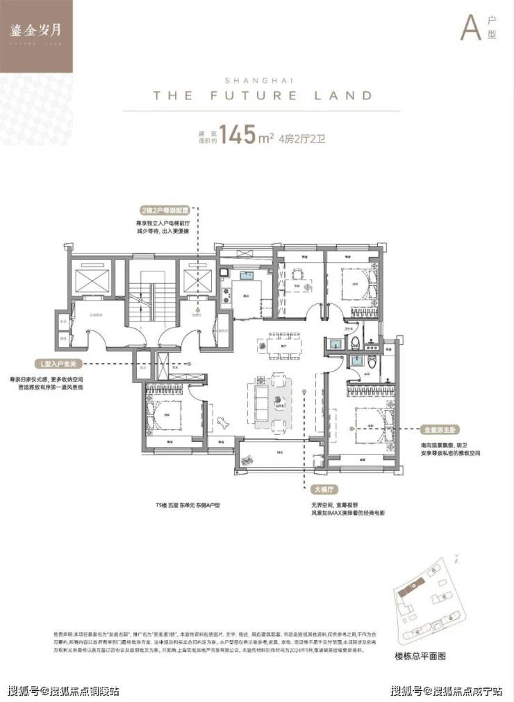 ✨吴淞道1號官方售楼处电话:400-8080-420这是一个配置超大横厅+L型入户玄关的奢阔4房户型,同样搭配两梯两户+独立入户电梯厅的设计,不同的是横厅及各功能空间的尺度都进行了一定比例的升级。