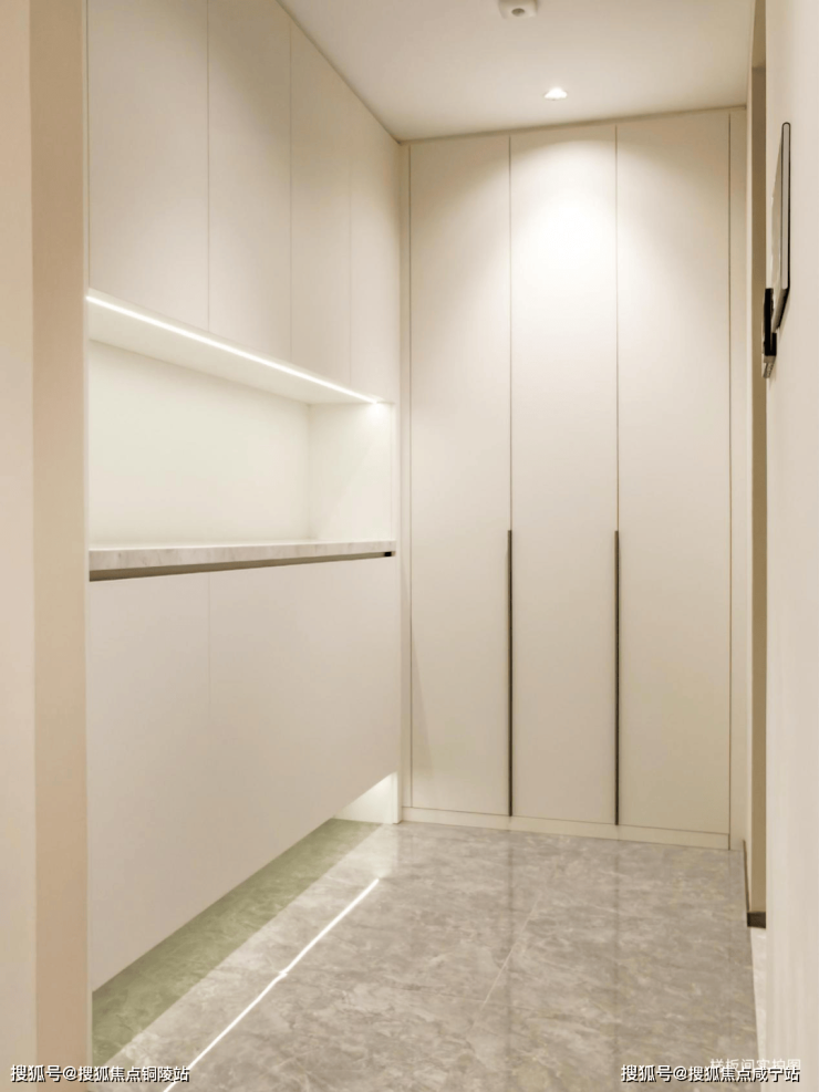 而作为归家动线的重要节点,入户门厅是生意场和生活处的过渡,一扇门的启合划分出了“家”与“外”的界线。为此,上实·吴淞道1號,采用地上地下双精装入户门厅的设计,更在细节处精细考量。门厅墙面甄选大块岩板铺就,视觉一体感强,同时,与地库门厅入户处璀璨的星空顶质感呼应,让出入间步步优雅。