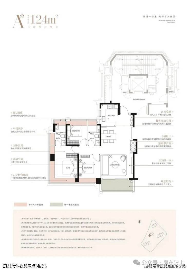 建面约124㎡经典的三房布局,高效满足主流家庭的居住需求,每一房间均设计有观景飘窗,让外滩的天际线成为日常生活的背景。创新的S墙设计与南向次卧“可开可合”的灵活隔断,在有限面积内实现了功能与美感的精妙平衡。