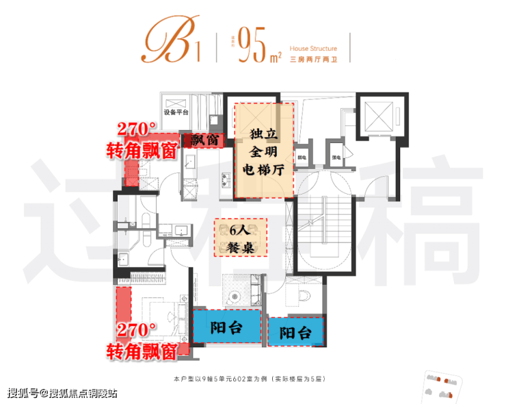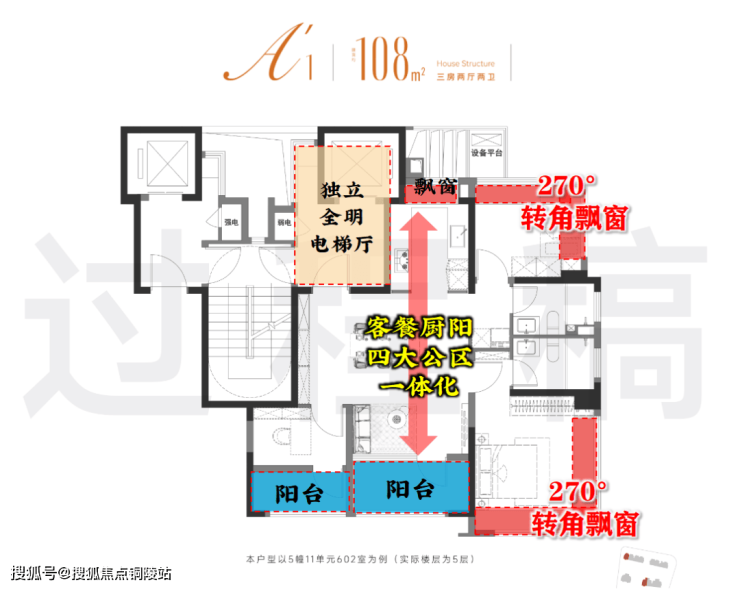 值得一提,当很多豪宅还在用转角飘窗打动客户,项目却在这个500w级新盘上拿出南北双270度「全景舱户型」。