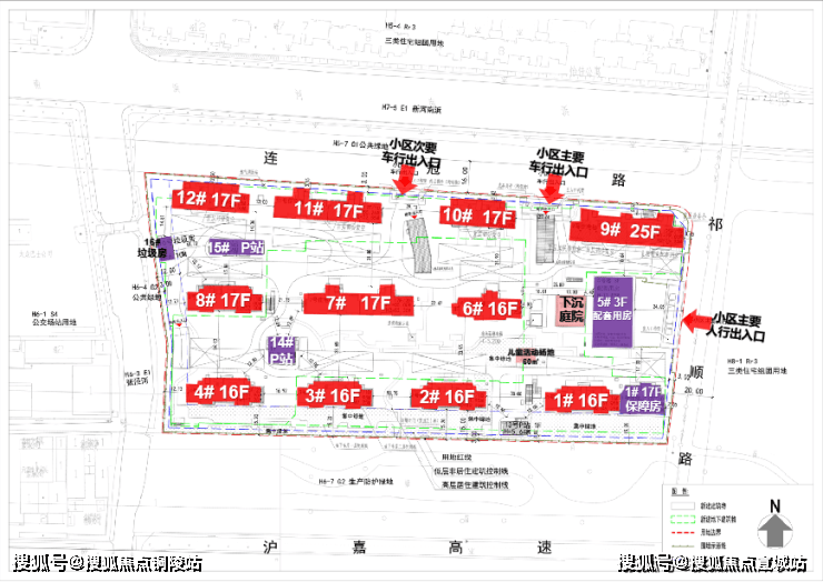 根据项目设计方案显示,拟建11栋16-25层高层住宅。其中1号楼靠近17层的保障房,5号口为3层的配套用房,14#、15#为P站,16#为垃圾用房。