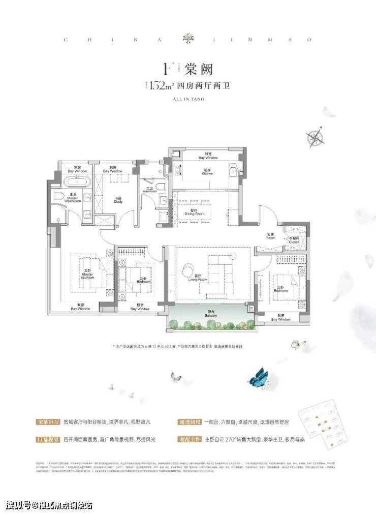 全景舱艺境美宅,标准层约3.1米层高、270度全景飘窗、LDKB一体化、南向跑道阳台、超12米南向全屏开间,无限视野尽收眼底,还有超金喜的满配精装,全上海只有央企金茂才能做得到。