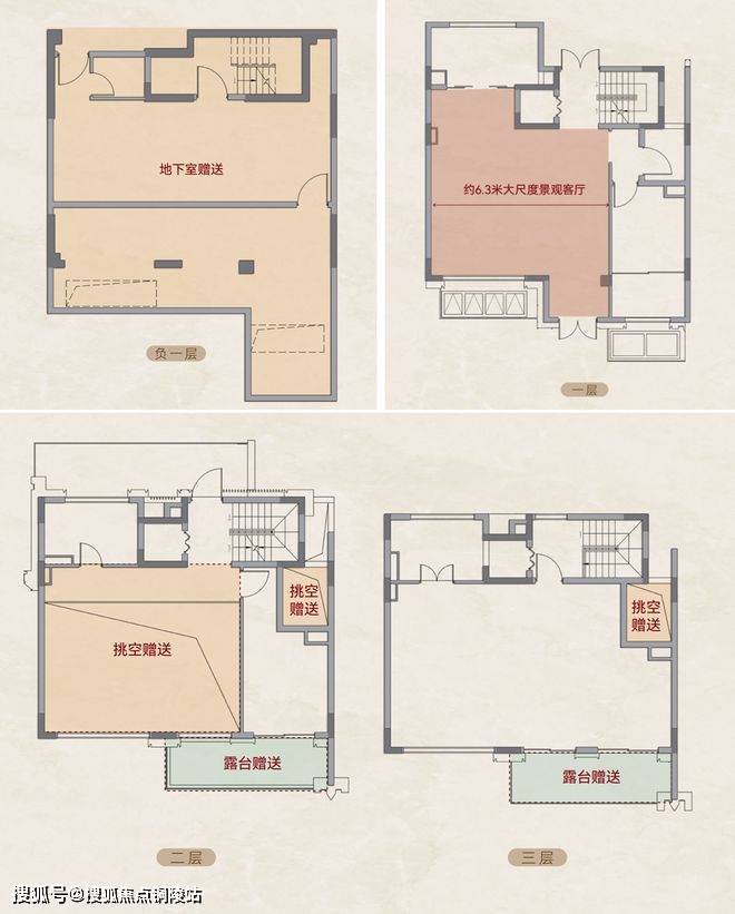 1)205-225㎡联排产品,累计附赠面积约238㎡,实际得房率远超216%!