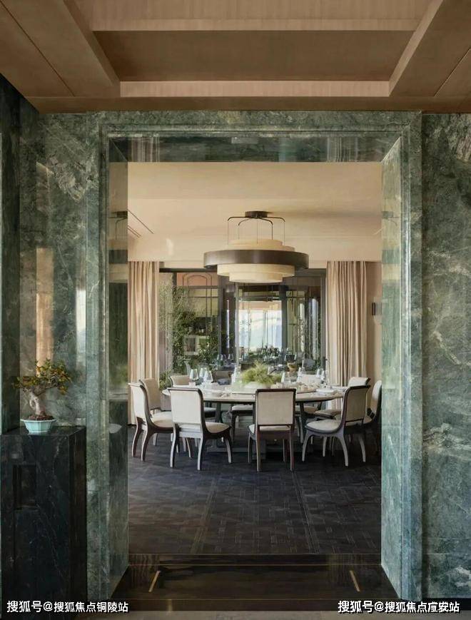 从选材来看,各种奢侈品级石材随处可见,比如与北京钓鱼台国宾馆同款的意大利进口鱼肚白石材,造价高达约2万/㎡,被誉为“世界上最贵的石材之一”!