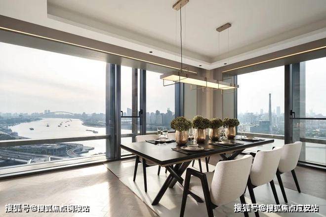 建面约240㎡边套,采用L型转角落地窗,打造了270°环幕瞰江视野,无论身处客厅、餐厅,都能以不同角度眺望黄浦江的波光粼粼。