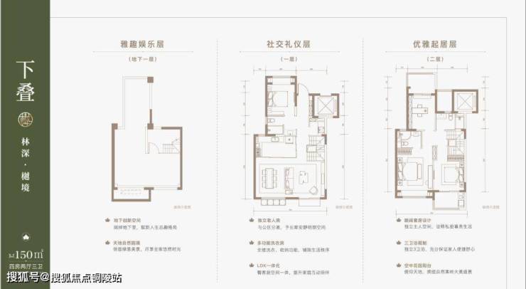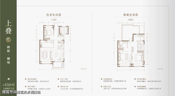 二层双南大套房+南向阔景飘窗+三卫的设计,空间层层递进,尊崇有序。