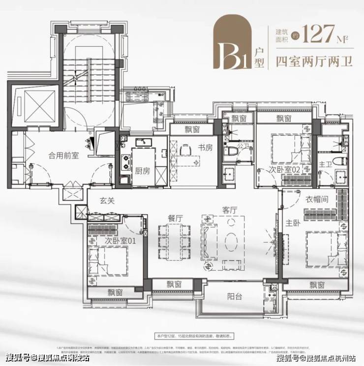 来看看更大一点的户型—— 建面约127㎡超阔四房 ,同样是 南向横厅设计,并拉伸至4开间, 空间舒阔。 主卧套房设计 ,也有足够的收纳,打造专属秀场。