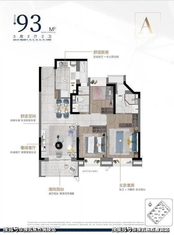 建筑面积约93㎡户型做到三房两厅两卫,比别人“多一卫”的设计,让三代同堂依然从容有度,更高性价比收获大宅生活感。让空间功能性、舒适度足以媲美市面上100㎡+户型。南向三面宽,拥有更多采光面,LDK一体化,打破空间界限,生活大有享法。