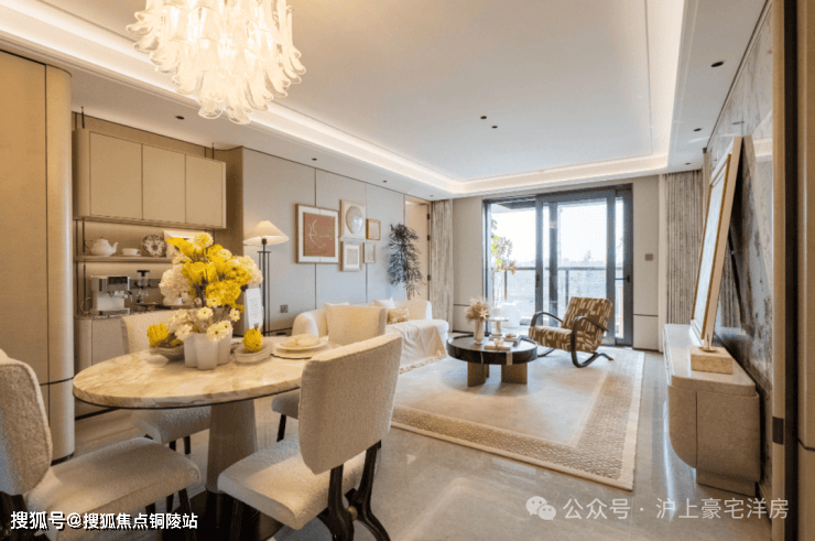 项目延续了前滩滨江国际住区的新海派风貌特色,从不同时期的海派建筑语言中提取经典元素,运用当代审美语言创新表达,整体呈现出典雅、简约、摩登的时尚质感。立面打造上采用石材+金属铝板的组合,将石材的恒久经典与金属的时尚质感相融合,既彰显了海派建筑的厚重底蕴,又展现了滨江住宅的灵动气质,与前滩的城市天际线完美呼应。细节处的线条勾勒、窗墙比例的精准把控,都尽显国企匠心,让建筑在时光的洗礼中始终保持独特魅力。