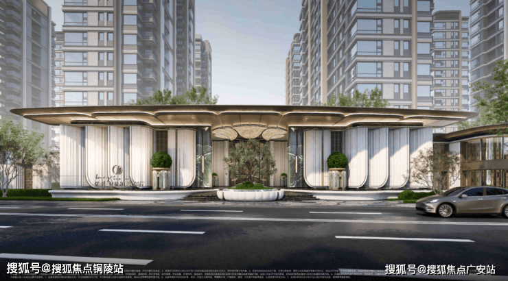 项目采用经典三段式立面美学,以竖向线条构筑挺拔轮廓,辅以香槟金铝板等材质,呈现出现代摩登的质感。