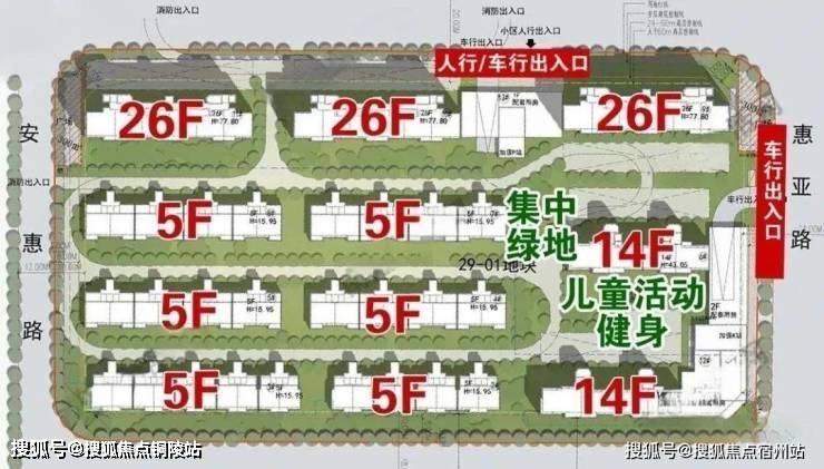 29-01地块原设计方案,将北面人行/车行的出入口向西侧的安惠路方向进行了调整,并疑似将北面的主入口调整到了惠亚路一侧。