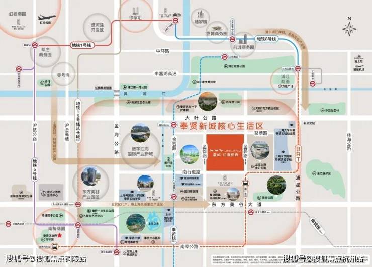 一、滨江南,近市区。金汇离人民广场直线距离仅约28km,对于工作在徐汇、闵行,或者浦东中环附近的人群,通勤便捷,自驾可通过浦星公路接入南北高架路。