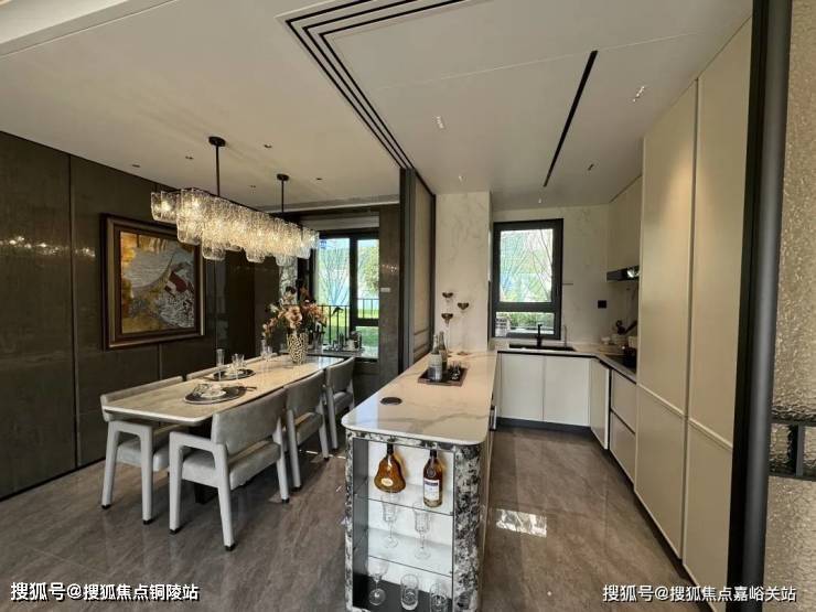 招商中旅·观境的解决方案是“零无效空间”。通过整合餐客厨等公共区域厅,将原来南北厅中间的走廊空间融合到使用空间中,减少过道的面积,避免碎片化的空间带来的冗余浪费。大面宽,短进深,餐厅与客厅横向相连,每一平方米都物尽其用,把客厅升级为家庭互动主场。