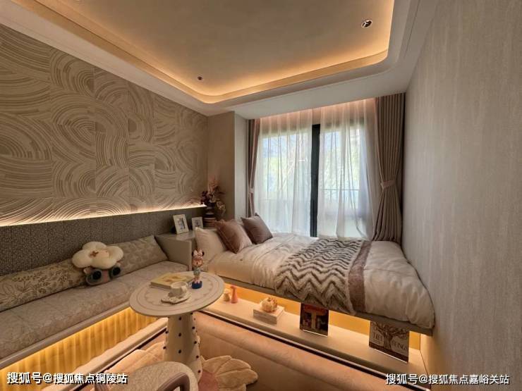 样板间3房做的是边套,今年非常流行的L型转角大飘窗也安排上了,采光视野更佳。