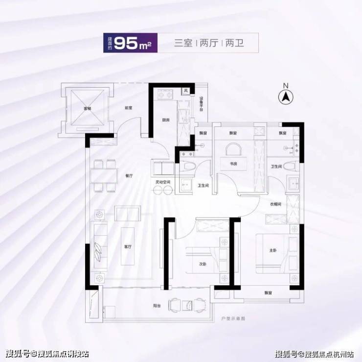 建面约95、96㎡室内拥有双开间大尺度阳台、全屋四处飘窗、套房式主卧,舒适度颇高。