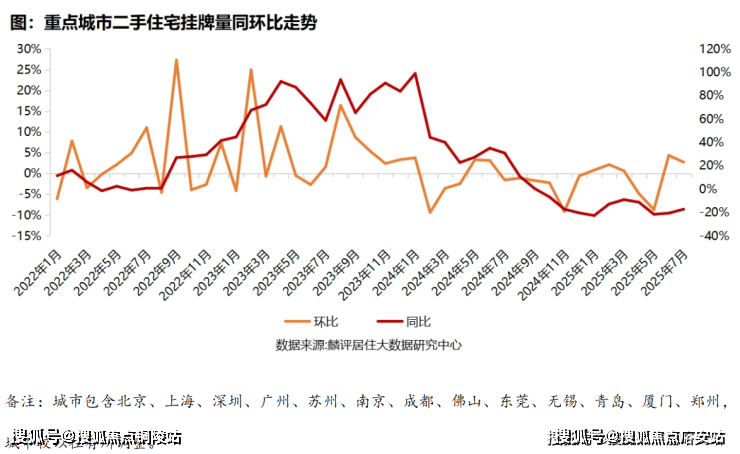 另外值得注意的是,在二手房挂牌量上升的同时,去化周期同样连续2月提升。报告显示,7月重点城市的二手房去化周期为16.8个月,环比上升2.7%,同比下降17.2%。