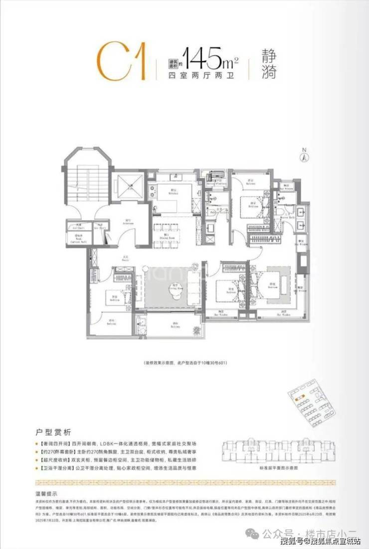 目前主力在售的户型有两个:建面约112㎡的三房和建面约145㎡的四房。