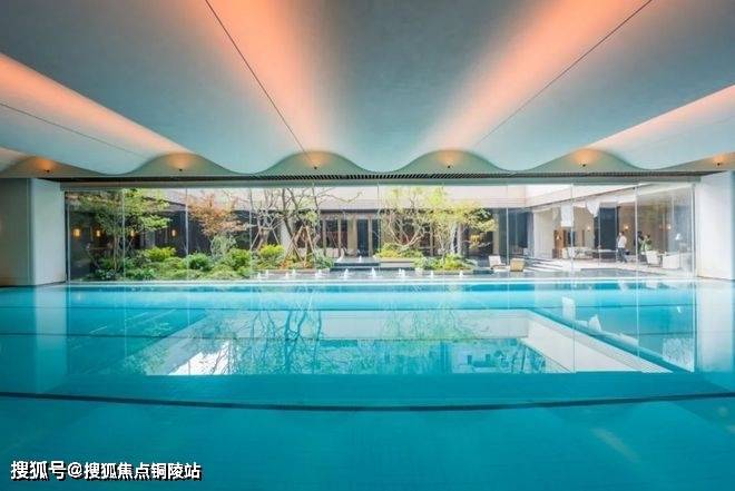 最后来看泳池。云邸玖章售楼处电话:400-9699-334✨【官方认证】✅✅✅做了再升级。改为采用大尺度的落地玻璃拼接,约2.4米宽巨幅玻璃,且通过精致的玻璃交接细节处理增进室内外空间的融合,强调泳池的无界感,真正实现了无边泳池的效果、质的飞跃。