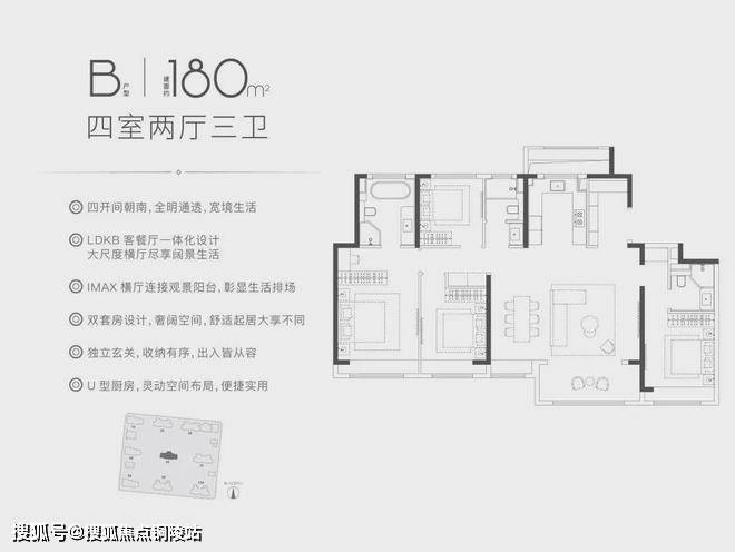 约172㎡和180㎡的4房3卫的户型,南向五开间朝南,