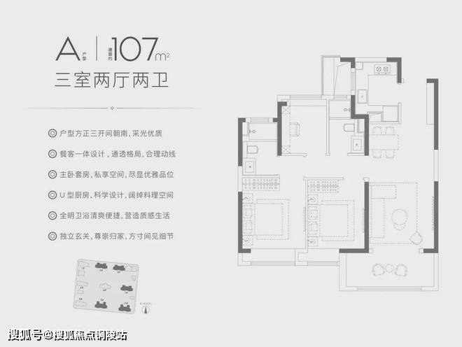 主次卧+客厅三开间朝南,餐客厅一体化设计,主卧套房设计,卫浴、衣柜、卧室层层递进,既有空间的尺度感,又有生活的舒适性,卫浴还是全明设置,极大提高生活的舒适度。