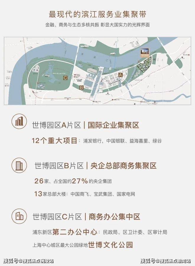 近享世界级滨江艺术带、2平方公里世博文化公园、五国金砖银行、央企总部等国际级配套。