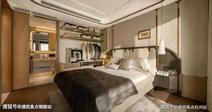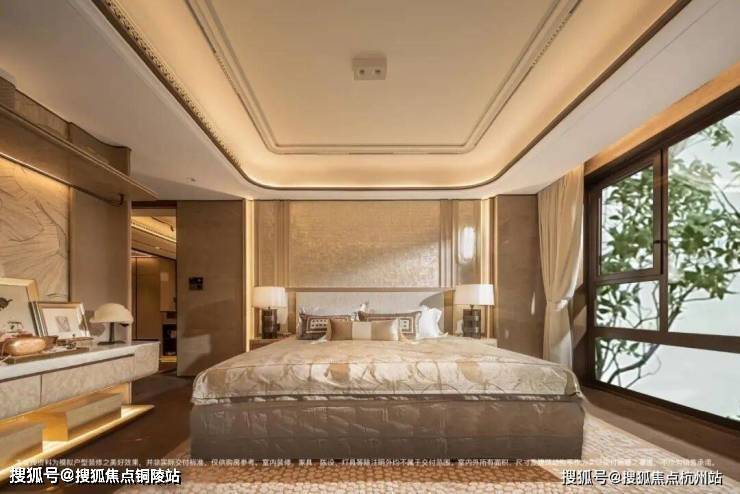 主卧标配约4.6米超大面宽贝母马赛克弧形皮革背景墙,地面采用和保利世博天悦同款的嵌铜荷叶拼地板,且嵌铜花色可以选择。