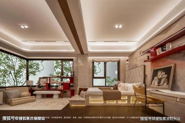 吊顶微弧度设计,在心理上营造出被温柔环抱的安全感,飘窗也可以灵活改造多种功能。