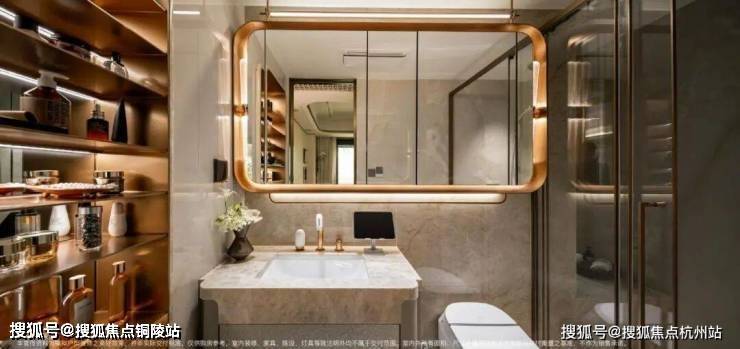 走进主卫,镜柜是高端定制款,内部带美妆冰箱,能放护肤品、化妆品。