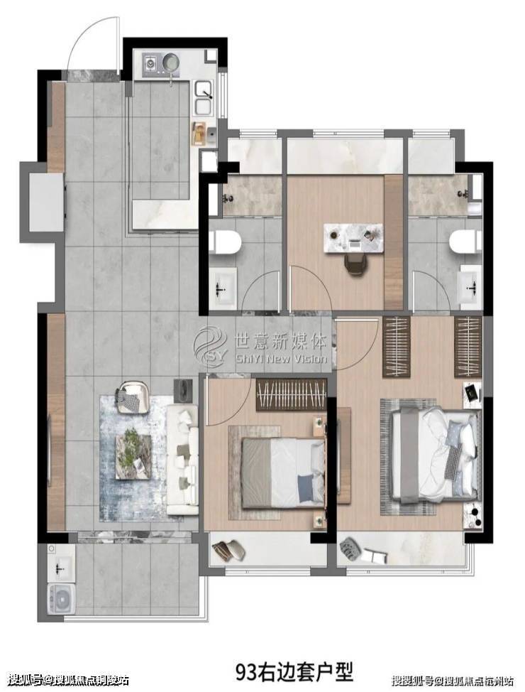 象屿深入考量空间与场景的运用,将生活中看得见与看不见的细节进行了细致打磨。玄关、阳台、厨房、卫浴均设置科学收纳空间,营造高品质生活体验的同时,更带给居者层建面约83㎡3房2厅1卫