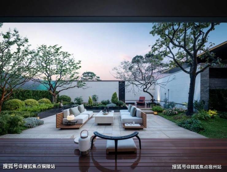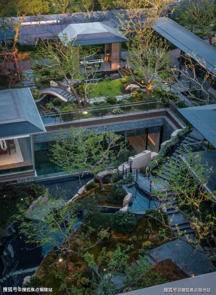 庭院的选材也极具讲究:太行山金景石堆叠成小山丘,岭南古桩铁冬青与中华原生乌桕树移栽而来,蕴含“聚财守业”的美好寓意。细节之处,经得起推敲,让人越看越有味道。