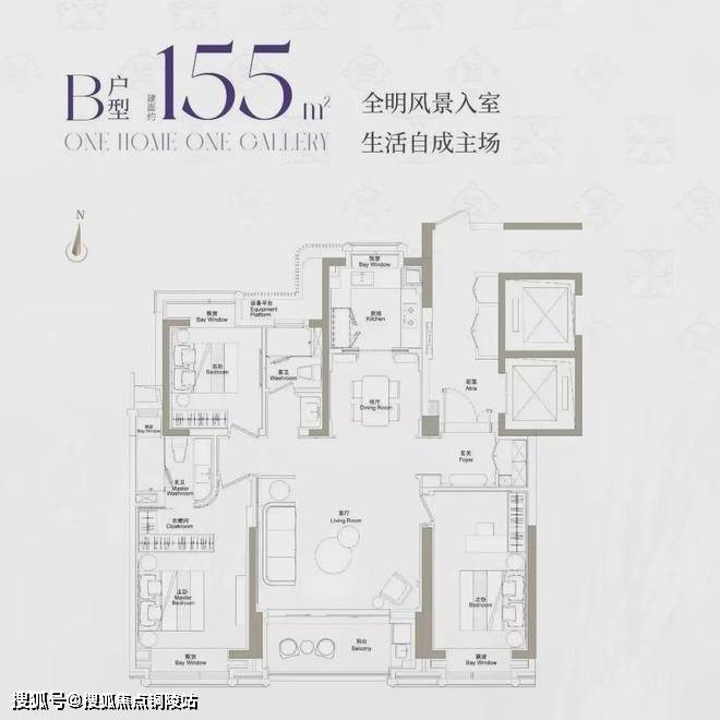 近全飘窗设计,扩展了生活的尺度感;主卧豪华套房设计,兼顾私密性与居住舒适度!