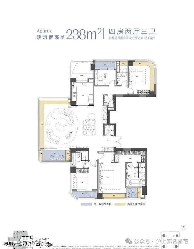 建面约238㎡户型均价约17.3万/㎡,建面约275㎡户型的均价约18.2万/㎡,比起前面衡复徐滨的次新房动辄22万、24万/㎡的挂牌价,倒挂不要太明显,安全垫不言而喻!