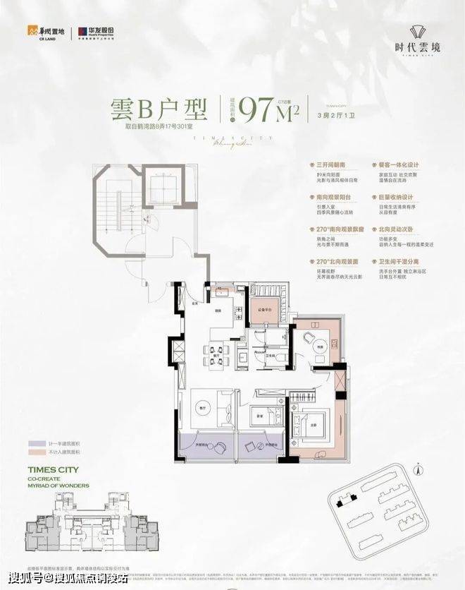 同时,边套设计让约97㎡户型拥有南北双270°转角飘窗,而得益于双约270°转角飘窗+南向双阳台的设计,时代雲境建面约97㎡产品,做到了3个卧室都能住人的“真三房”成交。采光和视野直接拉满,彻底摆脱中间套的采光劣势;户型引入创新四分离卫生间,大幅提升使用效率,完美适配多人口家庭的日常居住需求;真正做到了「小户型,大改善」。
