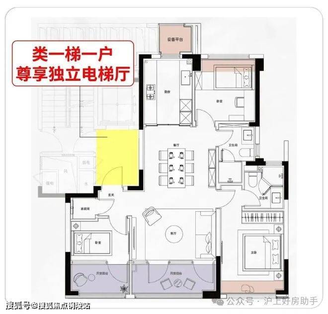 而时代雲境的类一梯一户设计,为每户预留了独立的电梯厅。