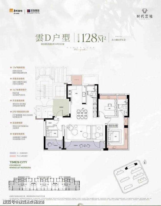 建面约128㎡3+1房:终极改善客户的首选产品。