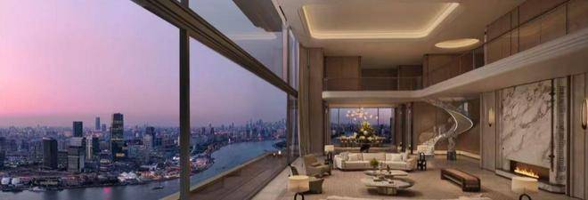 510㎡天际顶复拥有270°无界环幕视野,南向全落地采光大窗,西侧双露台分别连接客餐厅和会客厅,东侧露台更设计了悬浮露天泳池,直面黄浦江世界水岸。