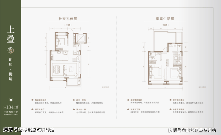 建面约 137 ㎡下叠, 四房两厅三卫 全能格局,非常适合二娃家庭以及三代同堂。